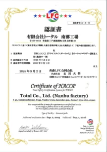 HACCP認証書